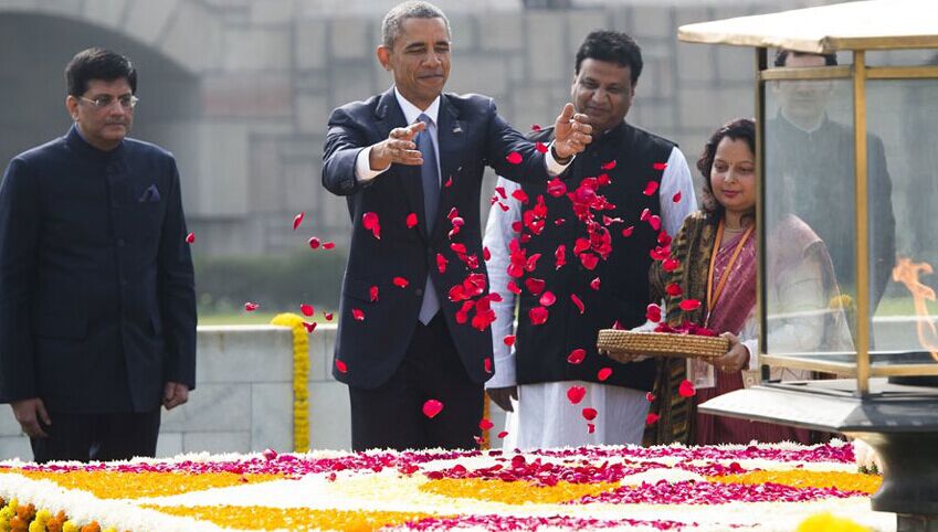 奥巴马拜谒甘地陵寝