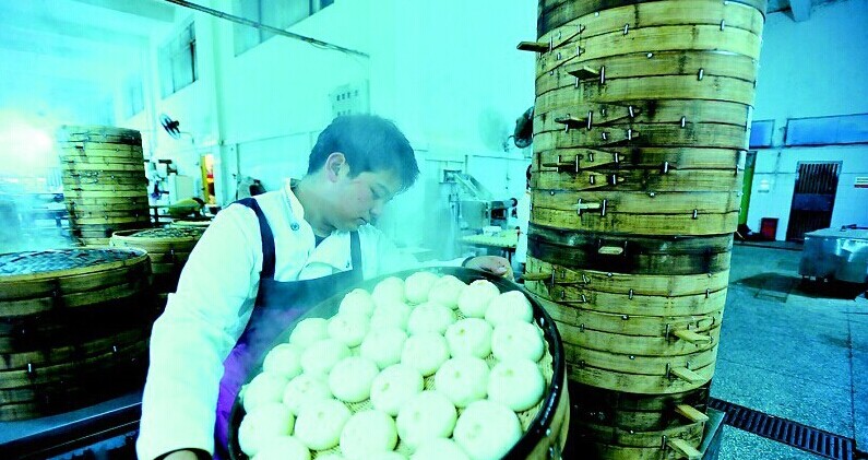 凌晨,同学们还在熟睡,他已在忙着蒸包子。