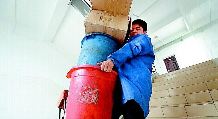 清扫完宿舍楼道后,把垃圾从五楼搬下去。