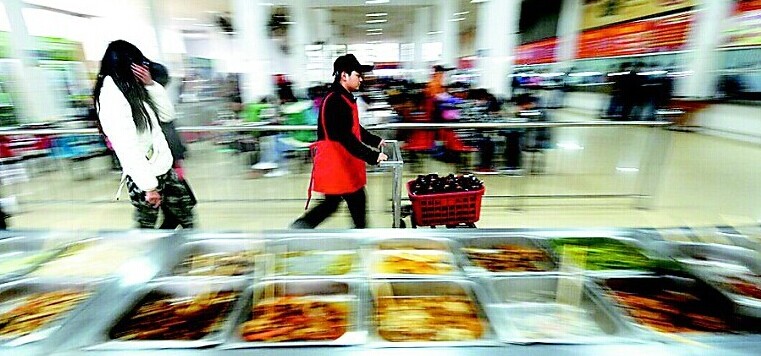 中午12点半到1点半,小骆在北园餐厅收盘子。