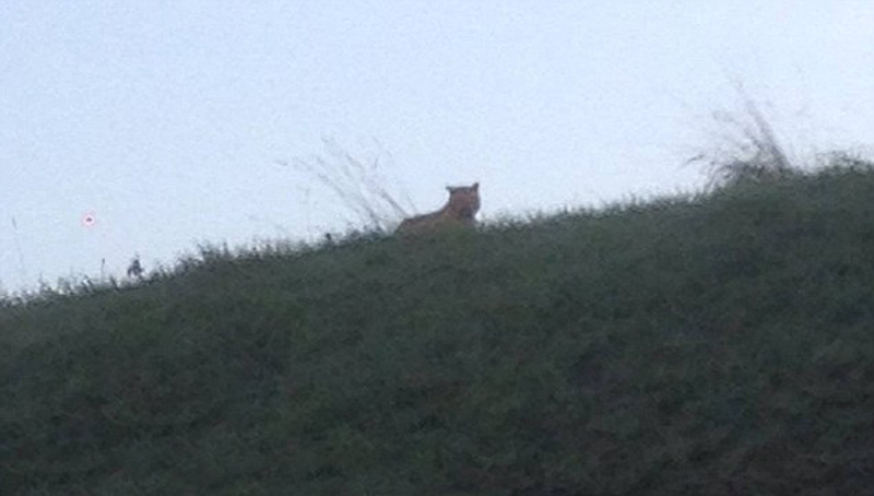 他说,“她没有下车,而是给我电话说,她看到一只大猫。” 他妻子随即拍下一张照片,看上去像是一只老虎。